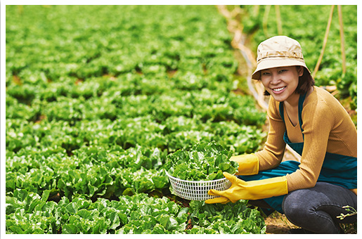 野菜、果物、米などを育てて、収穫をする仕事です。