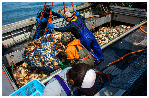 ブリやタイ、ウナギ、フグ、かきなどの海産物を人の手で育てる仕事です。